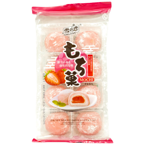 Мочі зі смаком полуниці YUKI&LOVE — це ніжний та апетитний десерт, що поєднує традиційну японську технологію з соковитим смаком стиглої полуниці. Ці мочі (рисові тістечка) мають неймовірно м'яку, тягучу текстуру та ніжну начинку з полуничним ароматом. Кожен шматочок дарує справжнє задоволення, переносячи вас у світ азійських десертів. Упаковка вагою 240 г ідеально підходить, щоб насолодитися смаком самостійно або поділитися з друзями.