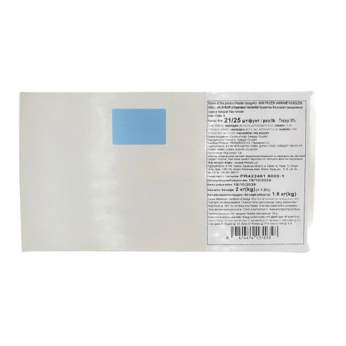 • Мінімальна глазур (10%): висока частка чистої маси креветки після розморожування.
