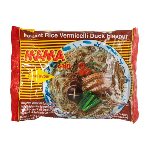 Локшина швидкого приготування зі смаком качки MAMA вагою 55 грамів – це швидкий та легкий спосіб насолодитися ніжним м'ясним смаком. Тонка рисова локшина в ароматному бульйоні зі смаком качки, доповненому спеціями, стане чудовим варіантом для швидкого перекусу, коли немає багато часу на приготування.