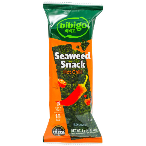 Норі снек Hot Chili BIBIGO вагою 4 г – це хрусткі та пікантні запечені морські водорості норі, приправлені гострим перцем чилі. Цей легкий та ароматний снек ідеально підходить для швидкого перекусу, додаючи гостроти вашому дню.