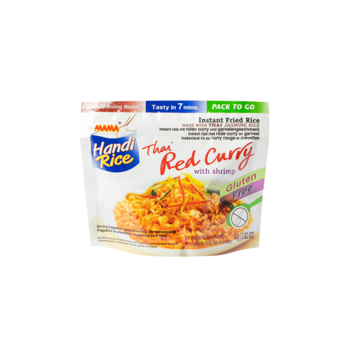 Рис швидкого приготування з креветками в соусі червоне карі MAMA вагою 80 г – це швидкий та зручний спосіб насолодитися ароматною стравою з рису, креветок та насиченого соусу червоне карі. Зазвичай це попередньо відварений рис, сушені креветки та суміш для соусу червоне карі, які при запарюванні гарячою водою створюють ситну та смачну страву з характерним гостро-солодким смаком червоного карі та морепродуктів.