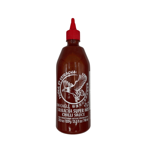 Соус Шрірача UNI-EAGLE Hot Chilli 820 г – це натуральний гострий соус з насиченим ароматом копченого перцю чилі, без жодних штучних підсилювачів смаку!